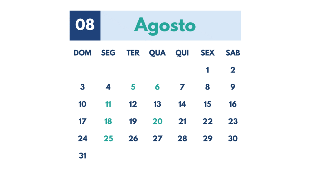 Manter-se em dia com as obrigações fiscais é essencial para a regularidade e saúde financeira das empresas. Por isso, preparamos um resumo completo com os principais prazos da agenda tributária de agosto de 2025, com destaque para as guias, tributos e obrigações acessórias relacionadas à competência de julho.
